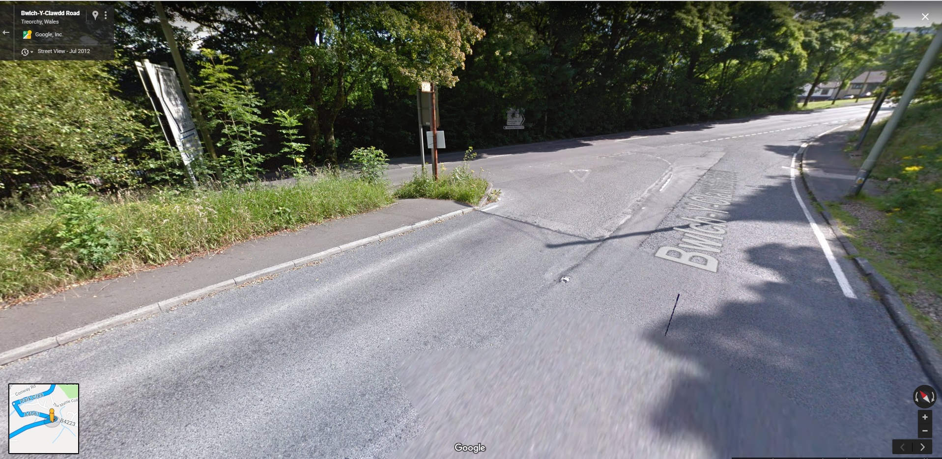 Dropping down into the valley, Treorchy will be on our left. There is a sharp left as we approach the bottom of the valley and enter the town.